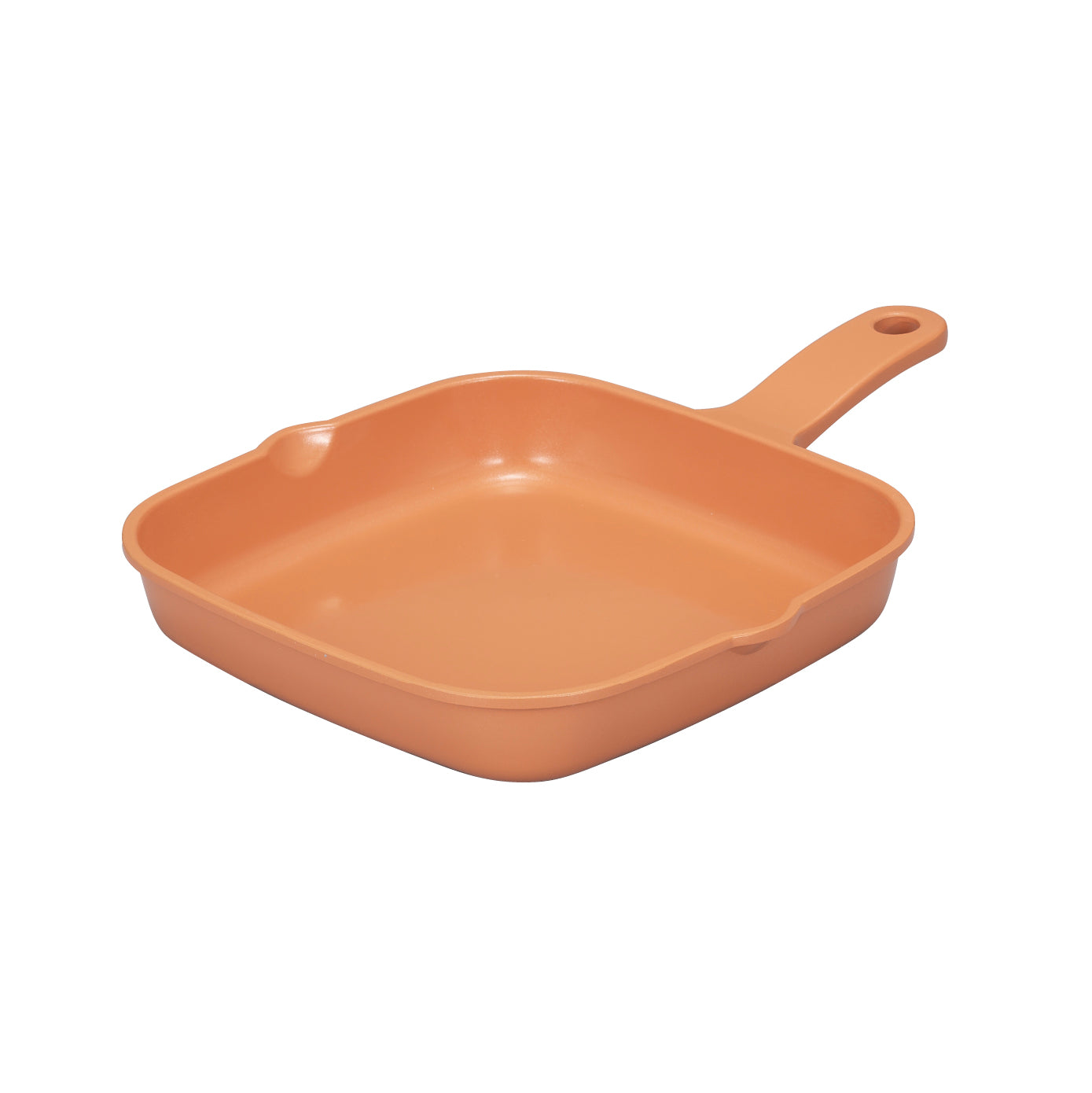 『コパン グリルプレート角型18×18cm/丸型19cm』はグリルやオーブンにそのまま入れられるため、さまざまな調理方法を楽しむことができます。軽量なアルミニウムにオールセラミック塗装加工が施されており、汚れが付きにくくお手入れも簡単です。また、焦げ付きにくいので少ない油でヘルシーな調理が可能です。