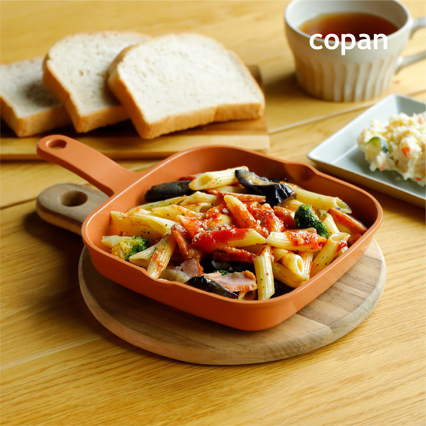 「毎日の料理がもっと美味しく、もっと楽しくなったら良いな」という気持ちから出来上がった「コパン グリルプレート丸型19cm/角型18×18cm」。グリルやオーブンにそのまま入れられるので、幅広い調理方法を楽しめます。オールセラミック塗装加工が施されているので、汚れが付きにくく、お手入れも簡単です。焦げ付きにくいので、少ない油でヘルシーな調理が可能です。調理後はそのまま食卓に並べてプレートとしてお使い頂けます。お皿のようにカラフルなグリルプレートは、食卓をいつも以上に華やかにしてくれます。