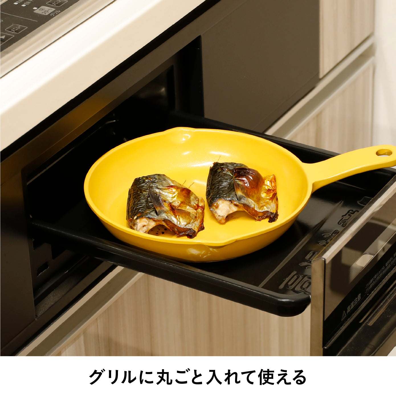 ポップで明るい色合いのため、調理後はそのまま食卓に並べてプレートとしても使用可能。食卓をいつも以上に華やかにしてくれます。これ一つあれば、焼き物からオーブン料理まで多彩な料理をお楽しみいただけます。