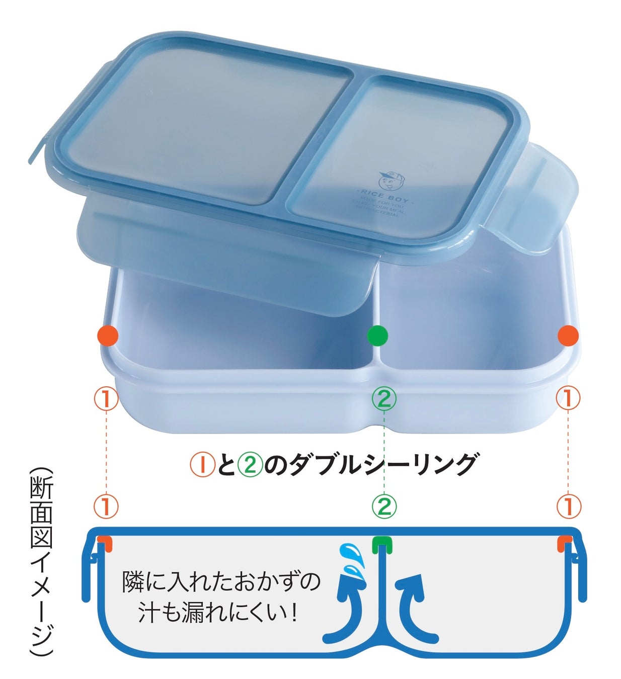 商品名:汁漏れしにくい弁当箱 抗菌ライスボーイ