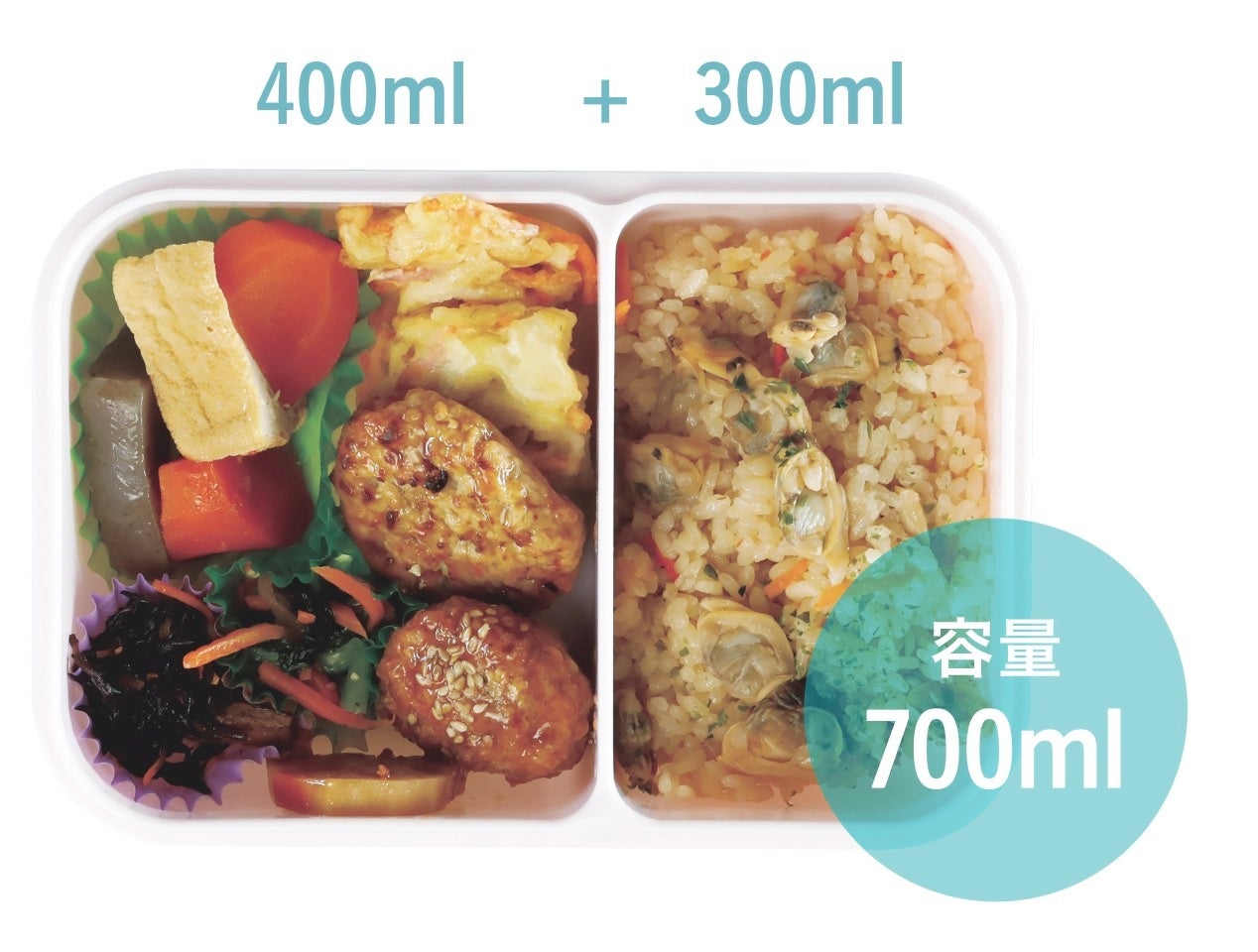 仕切りが固定されているので、おかずやご飯の位置を迷わず盛り付けられます。適度な深さがある弁当箱なので、おかずをたくさん入れられて見栄えも綺麗に!