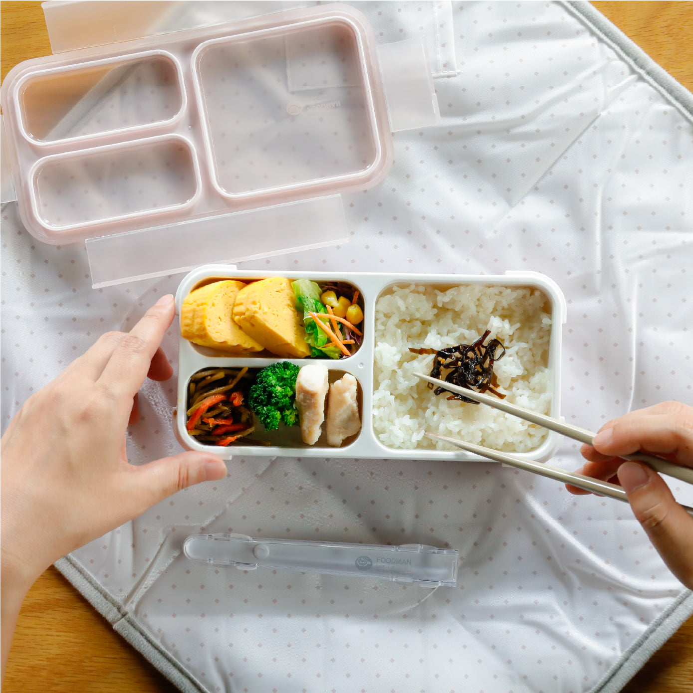『お弁当箱は傾かないようにカバンに入れてね』。そんな話をされた経験はありませんか?従来のお弁当箱は、ビジネスバッグやランドセルなどに直接入れることは少なく、別でランチバッグに入れて会社や学校に持って行くのが一般的でした。そんな中、今回ご紹介するフードマンは、なんと”立てて持ち運べる”お弁当箱!入れる方向を気にすることなく、また、かさばることなく持ち運びできる新スタイルのお弁当箱です!
