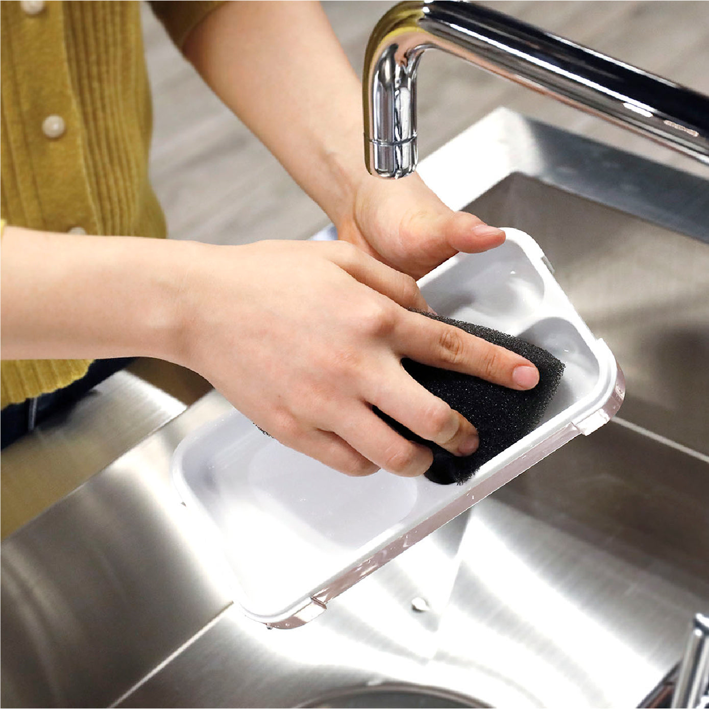 パッキンが一体成形なので蓋との間に汚れが入りにくく、いちいちパッキンを外して洗う手間もかかりません。食器洗浄機も使えてお手入れ簡単!抗菌加工なので安心です。