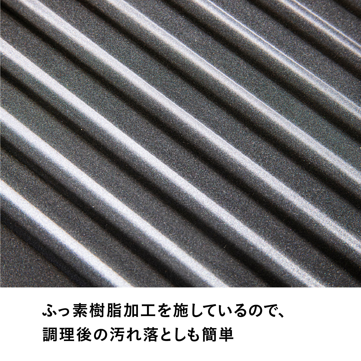② 波型のグリル面:余分な油が落ち、しっかりとした焼き目を。