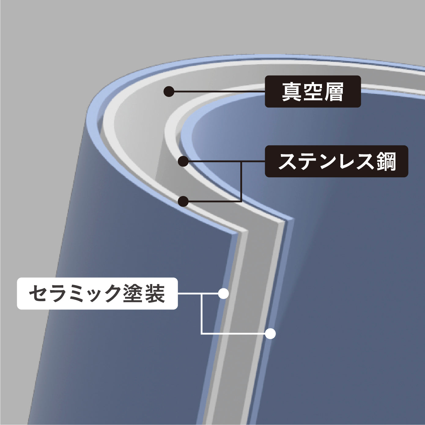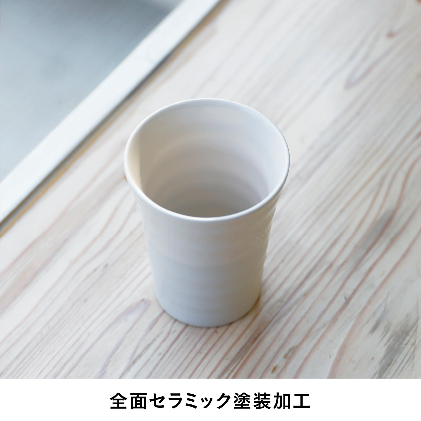 見た目は全面セラミック塗装加工で陶器のように見えますが、中身は真空断熱2層構造のステンレス製。 飲み物を保温・保冷し、おいしい温度をキープします。