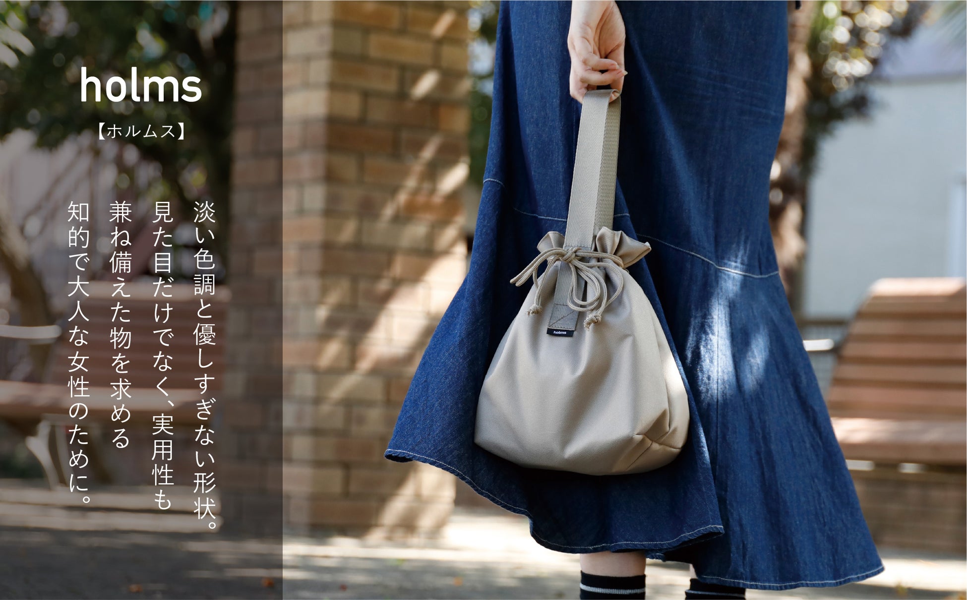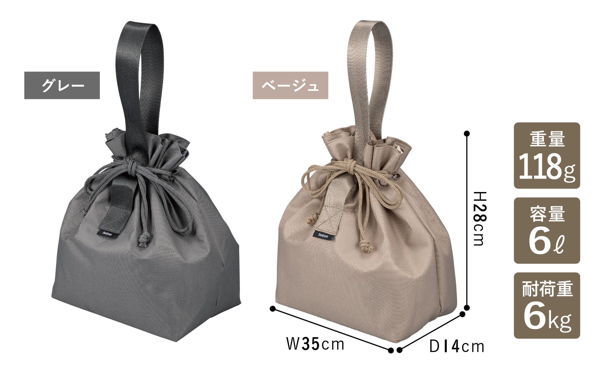 巾着型のフォルムが可愛い、holmsのランチジャーバッグ