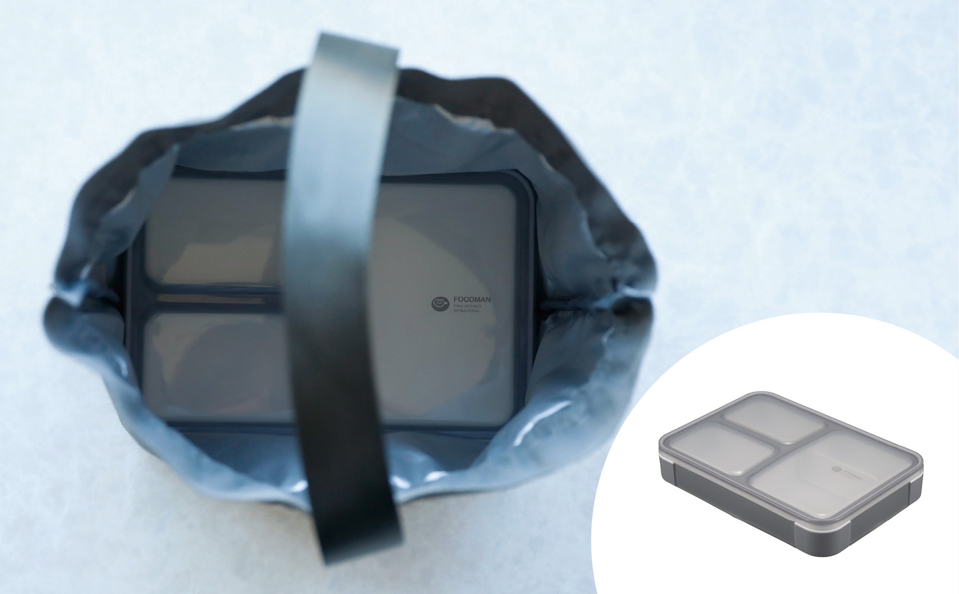 同社発売中の大人気お弁当箱シリーズ「フードマン」の600サイズがぴったり入ります。「FOODMAN 600」用の保冷バッグとしても使えます。底マチが広くどんなお弁当箱も持ち運びやすいサイズ感です。