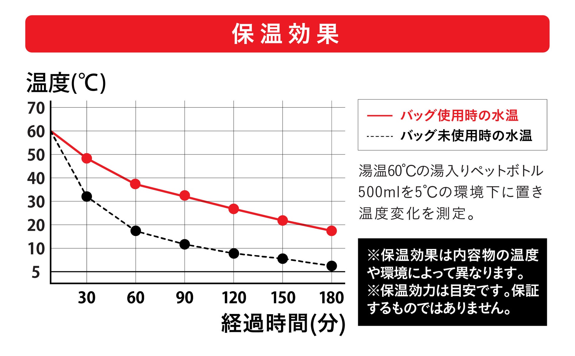 保温効力:60℃→18.9℃以上(3時間)